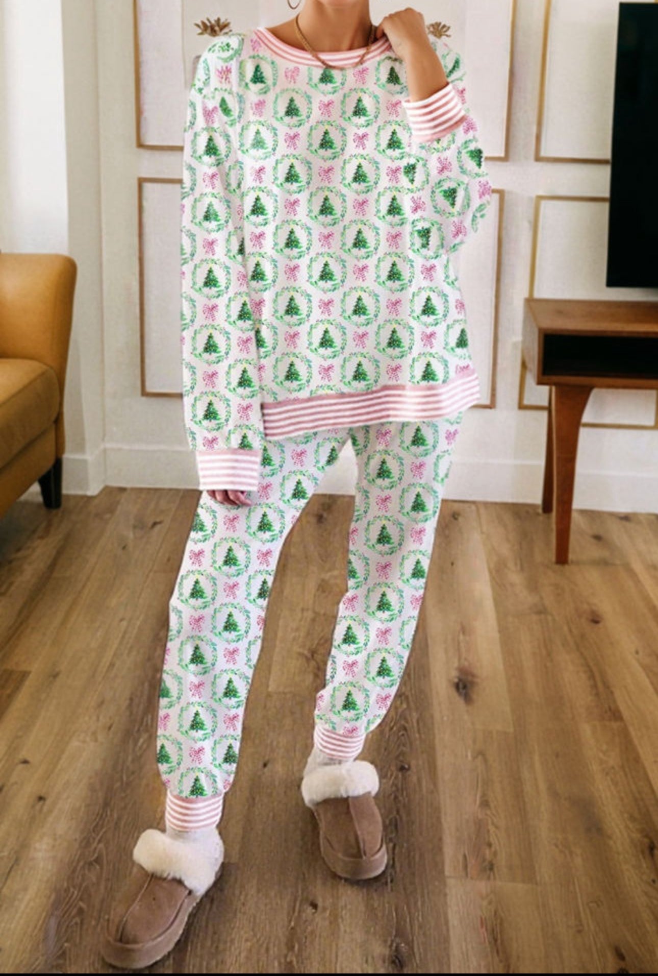 Pink Christmas Tree PJ Set - Shorts Set / Small is backordered and will ship as soon as it is back in stock.