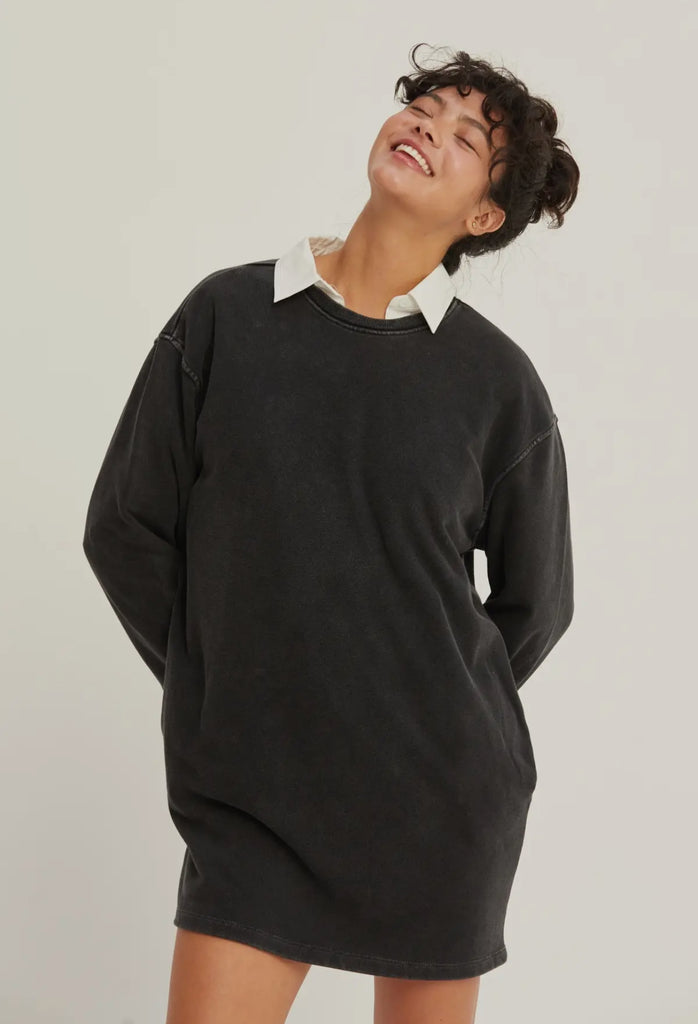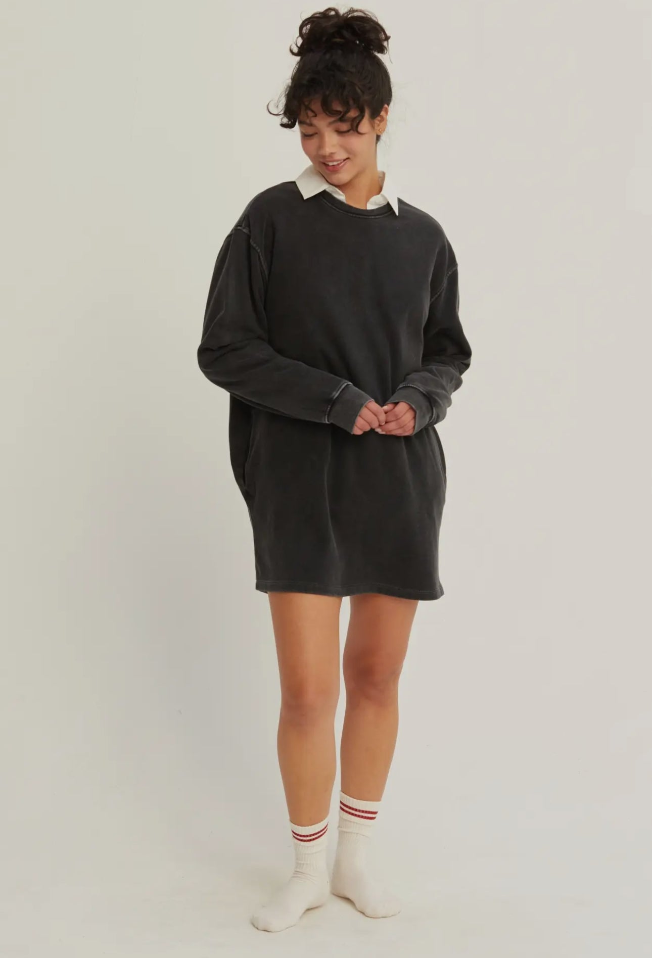 Made Me Do It Mineral Wash Sweatshirt Pocket Dress