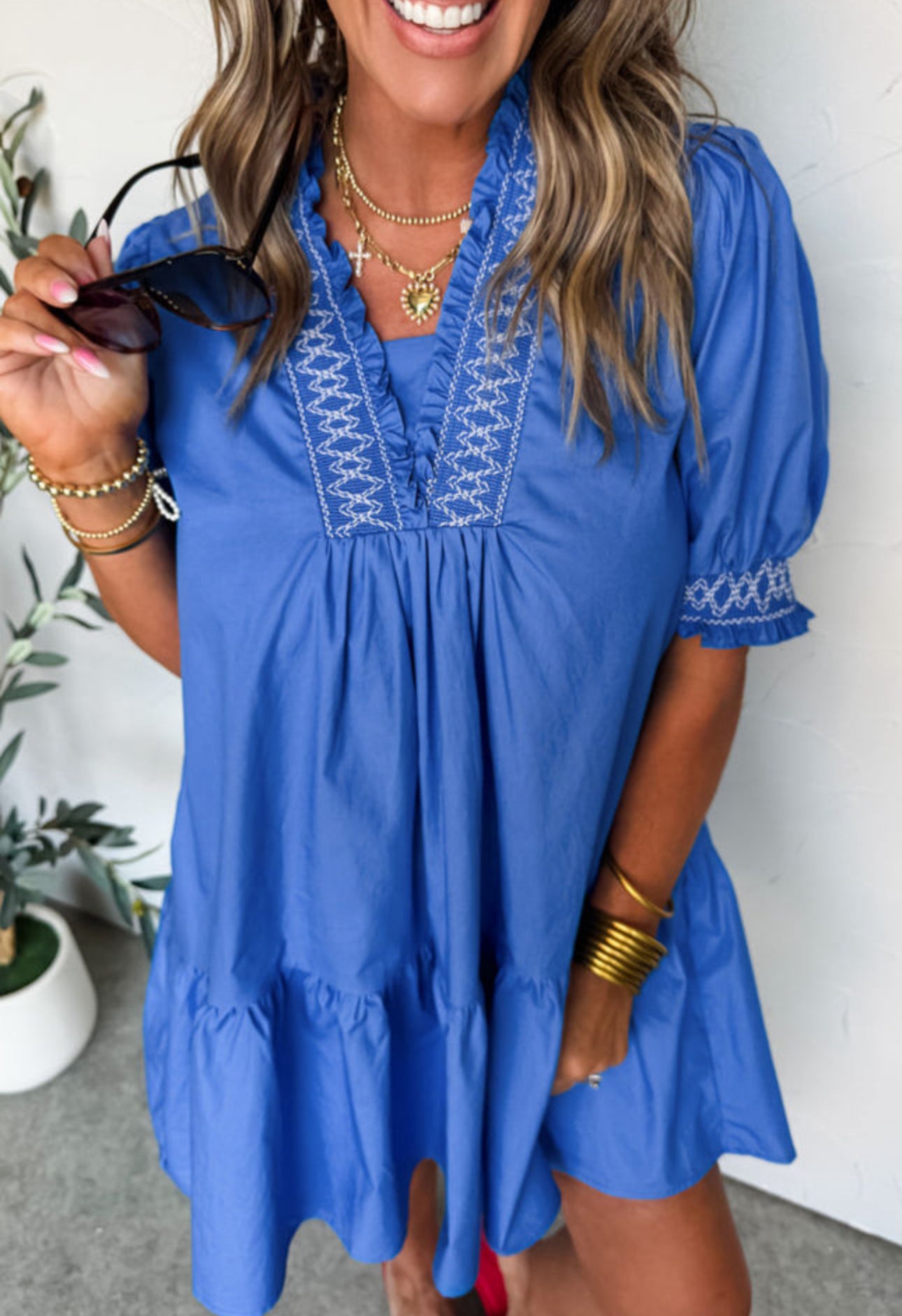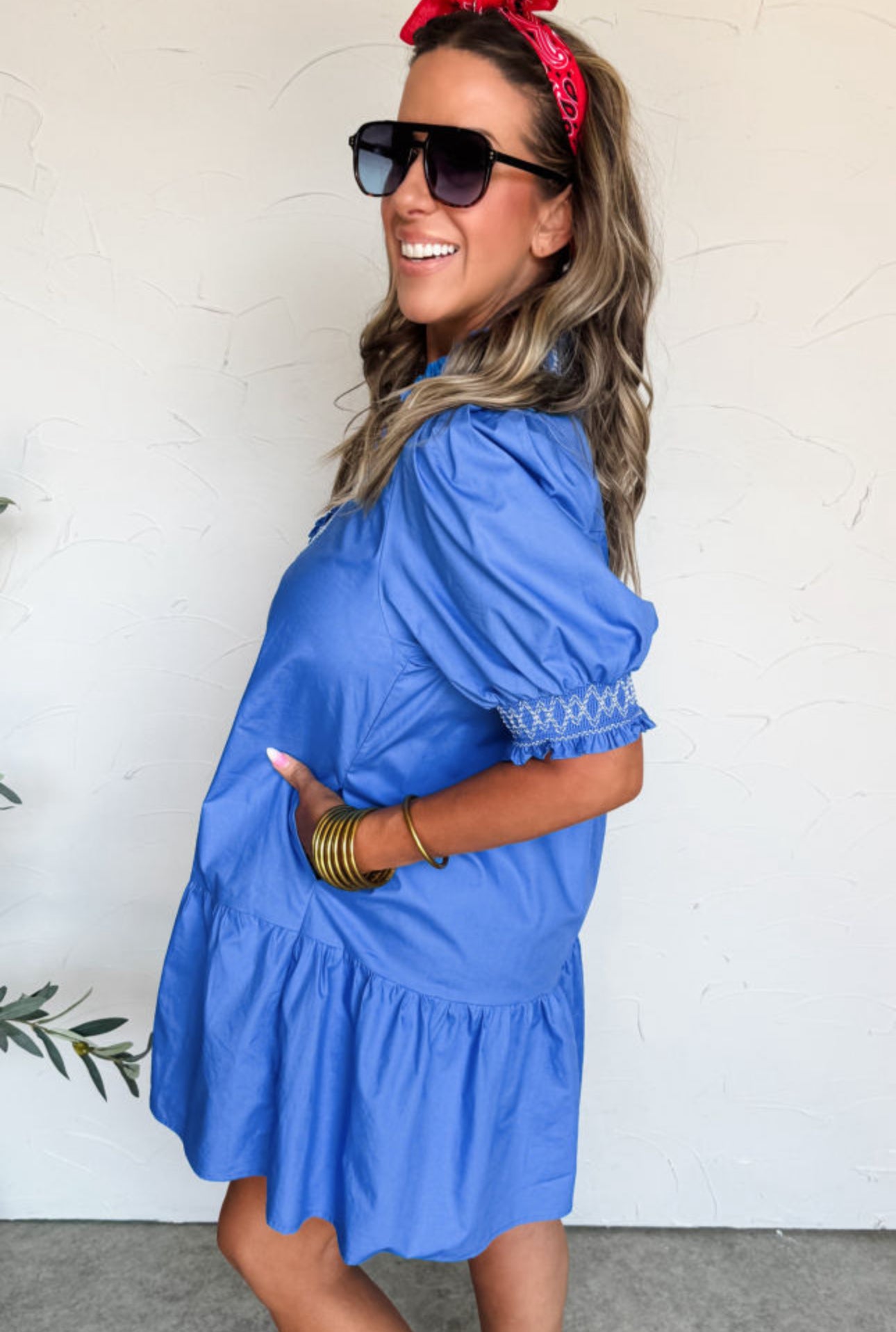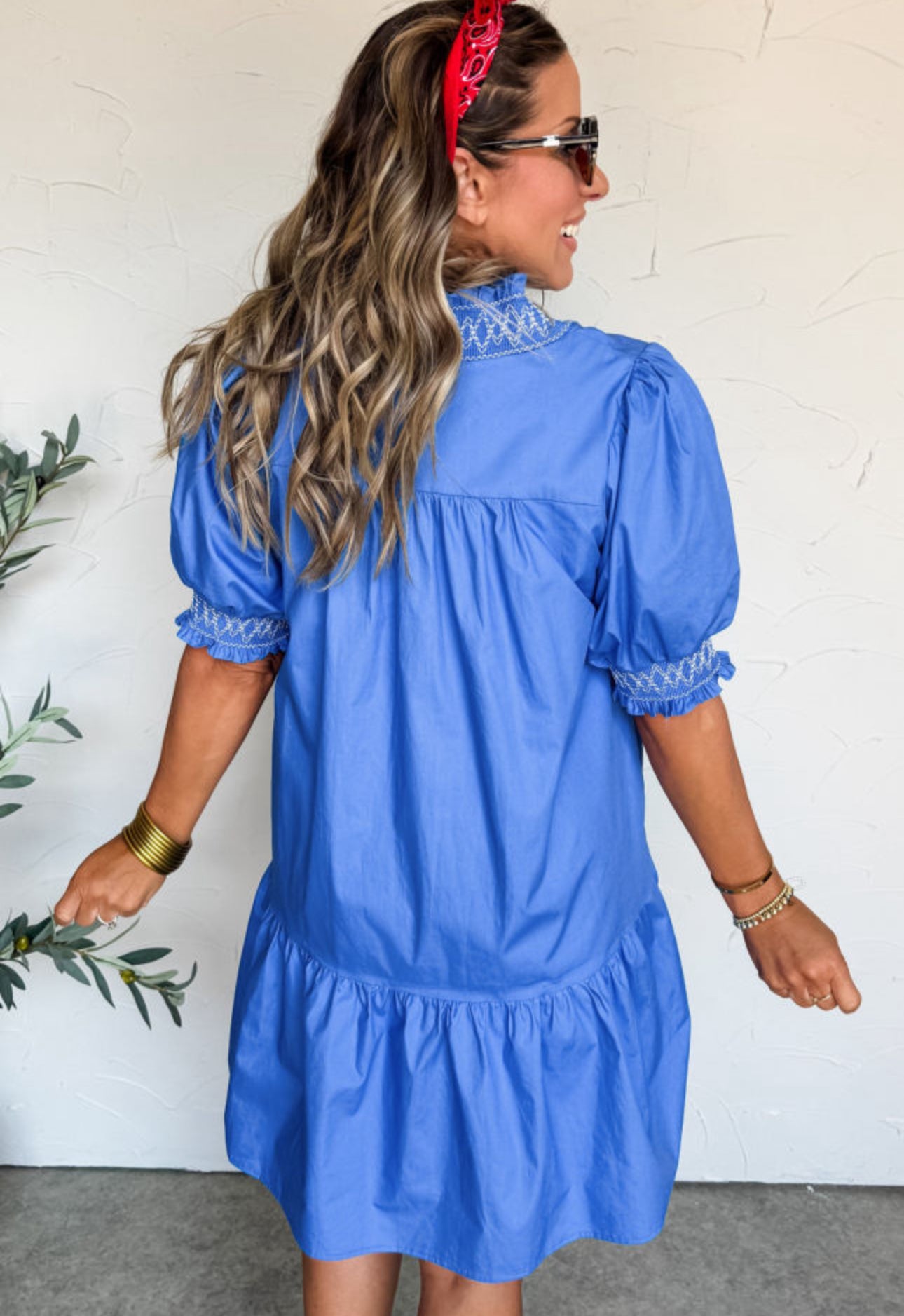 All Things Considered Blue Smocked Mini Dress - Small is backordered and will ship as soon as it is back in stock.