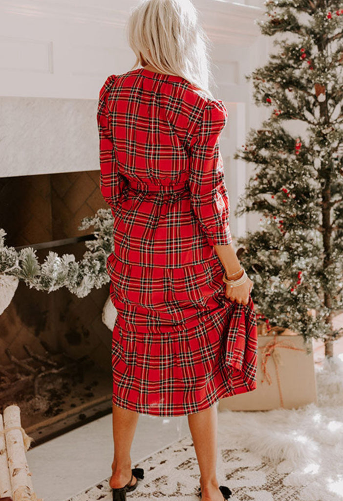 Christmas Plaid Tie Waist Dress - Small is backordered and will ship as soon as it is back in stock.