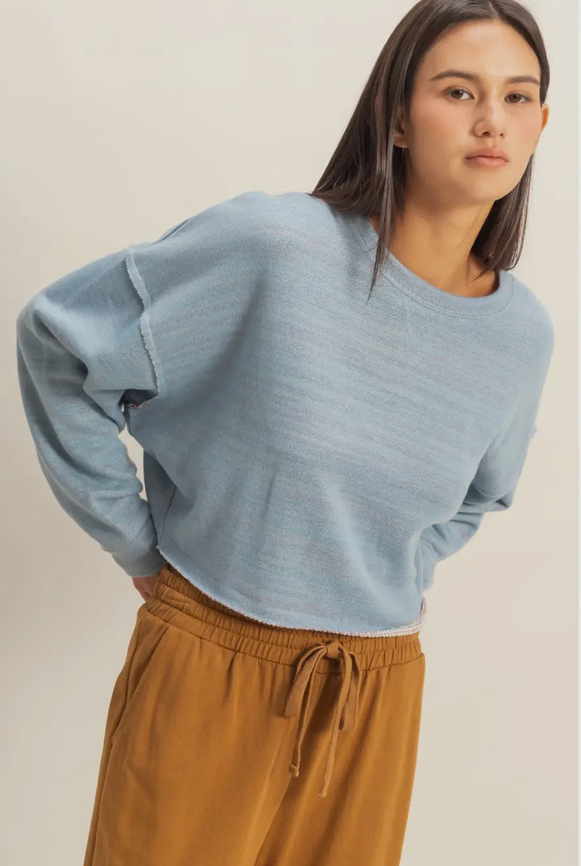 Featuring a classy crew neck, the relaxed-fit bodice is framed with a pair of long loose sleeves, while the drop shoulders give it an effortless vibe. Slightly cropped hem finishes off the look.