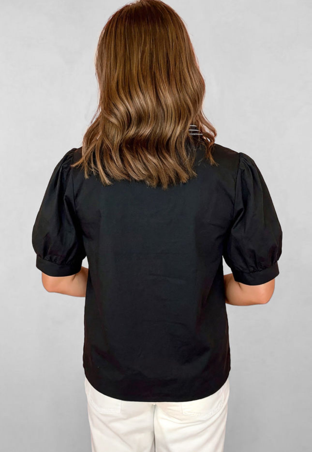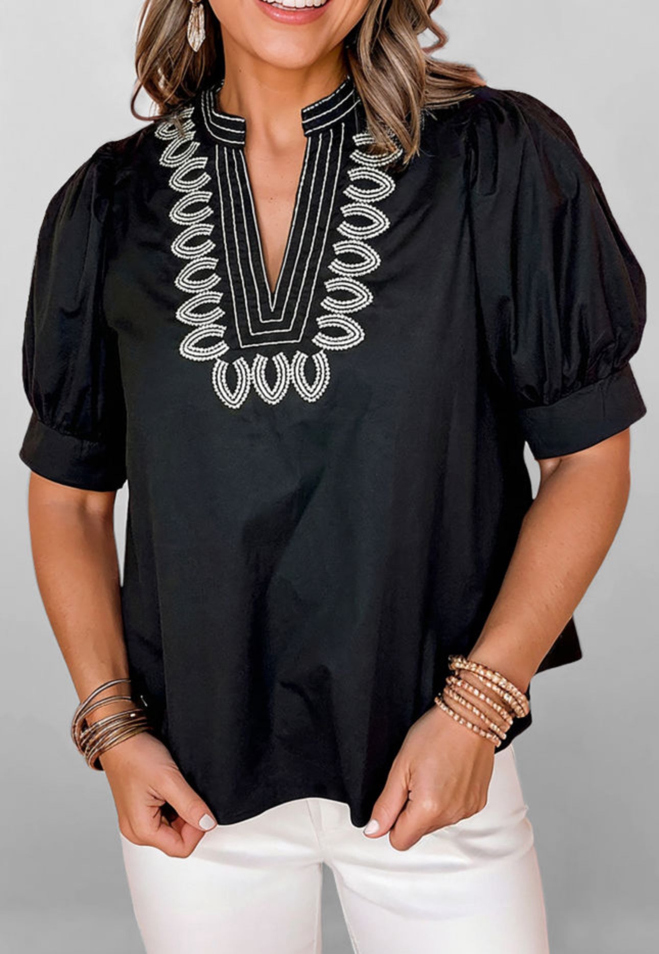 It’s Black & White Embroidered Top - Small is backordered and will ship as soon as it is back in stock.