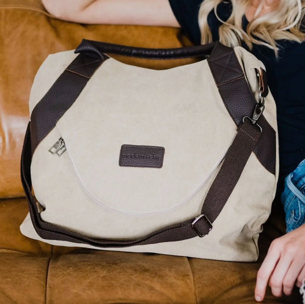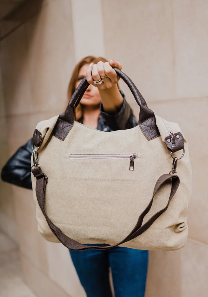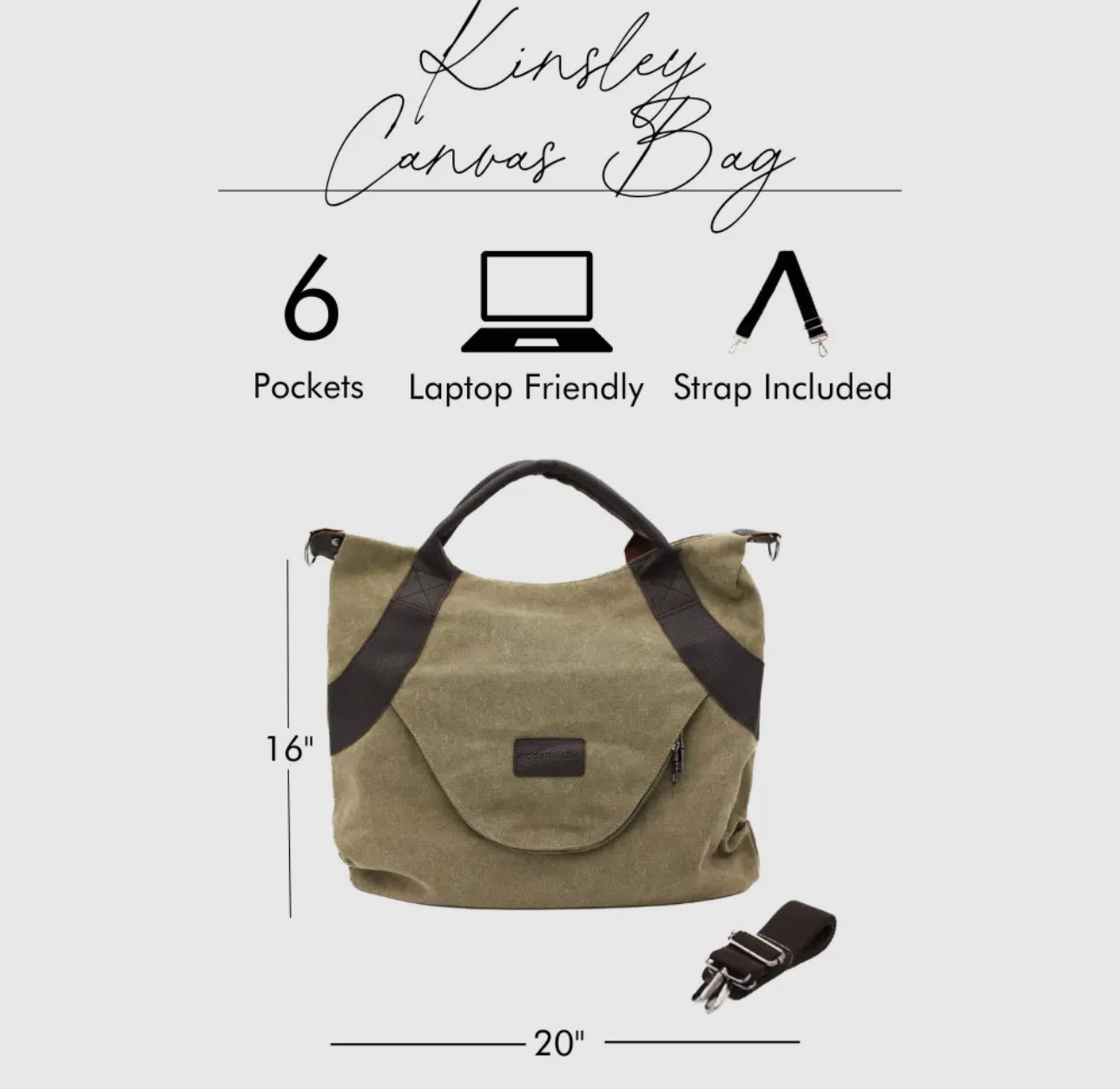 The Kinsley Canvas bag has lots of exterior and interior pockets for whatever you find yourself carrying. These canvas bags are plenty big to fit all of the week's essentials (and more).