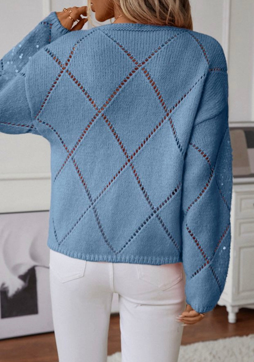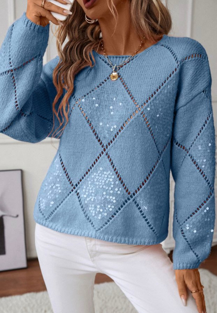 Snowflake Kisses Sequin Hollowed Sweater - Small is backordered and will ship as soon as it is back in stock.