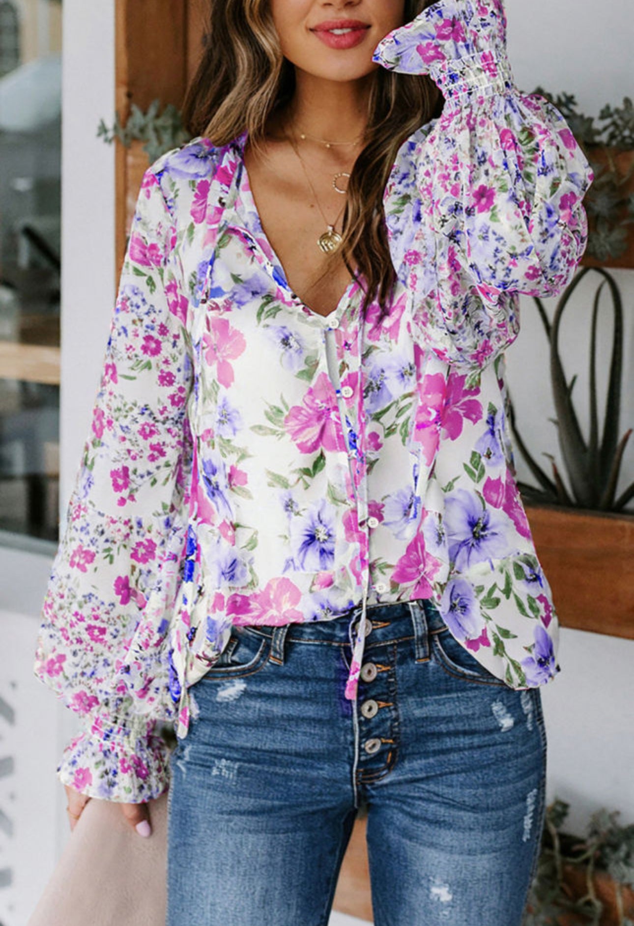 Spring Is In Bloom Smocked Sleeve Top - Small is backordered and will ship as soon as it is back in stock.