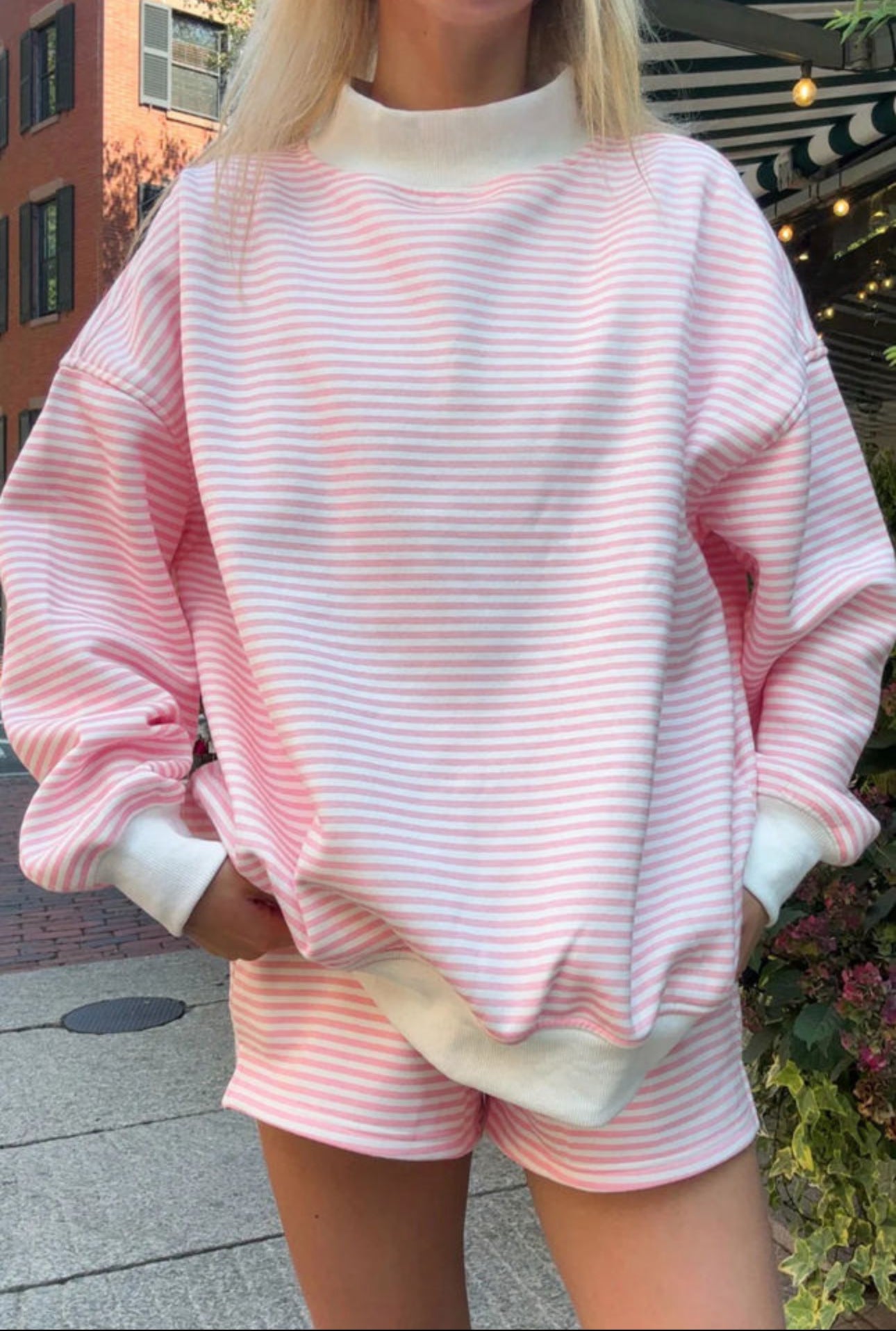Always On The Go Striped Pink Mock Neck Crew Set - Small is backordered and will ship as soon as it is back in stock.