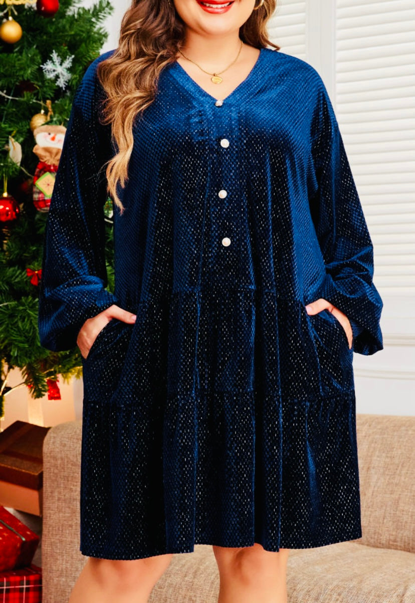 Blue Christmas Button Curvy Dress - 1X is backordered and will ship as soon as it is back in stock.