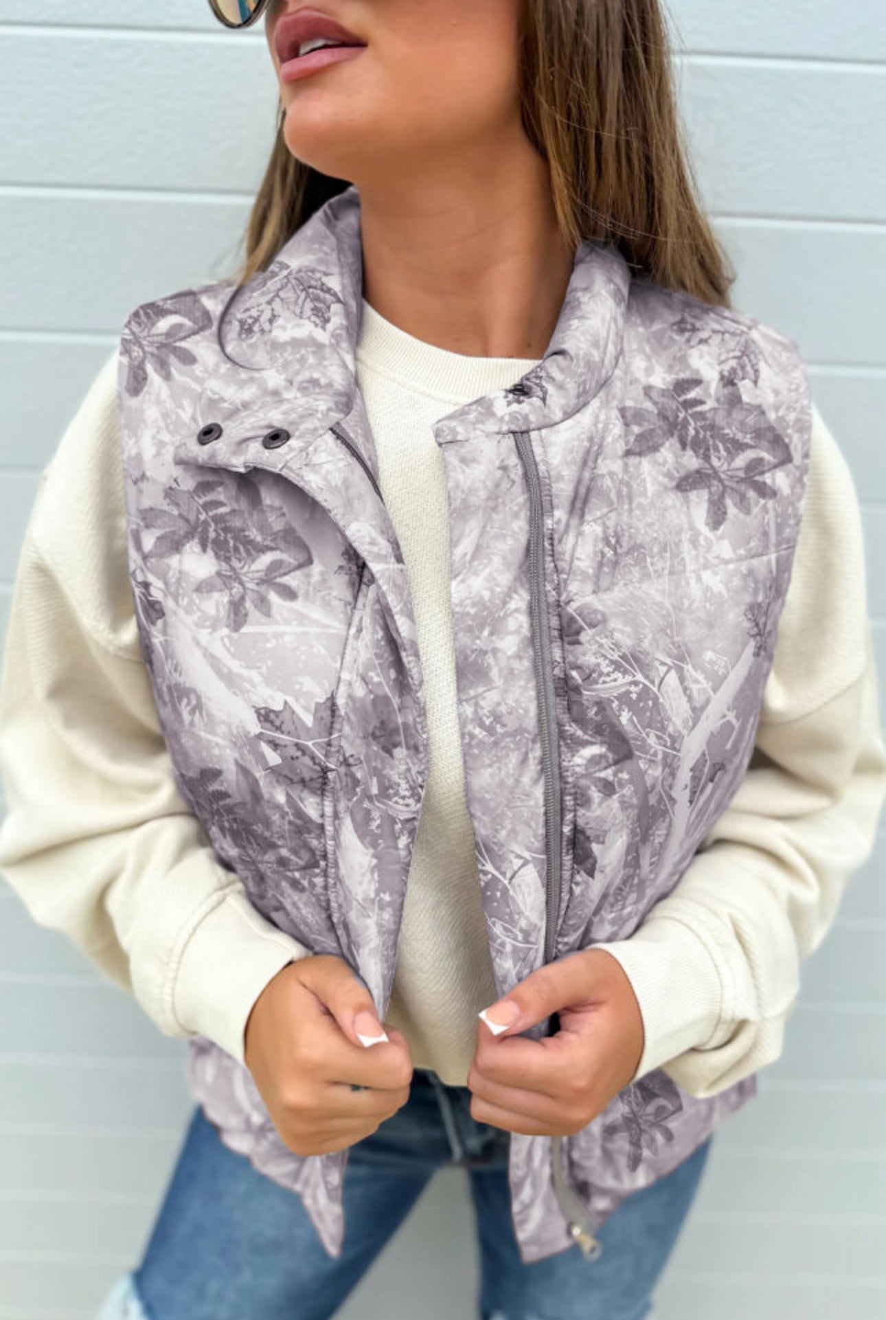 Brown Leaf Camo Puffer Vest - Small / Gray is backordered and will ship as soon as it is back in stock.