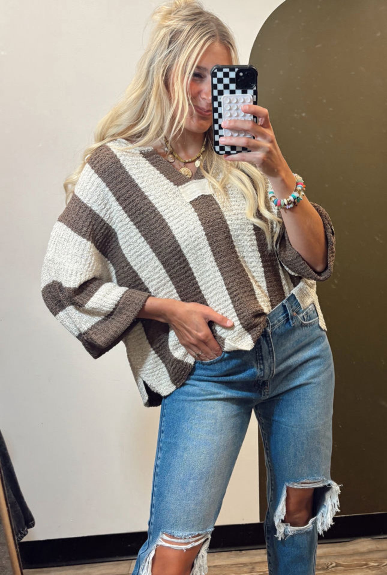 Cant Stop Now Colorblock Loose Fit Top - Small / Brown is backordered and will ship as soon as it is back in stock.