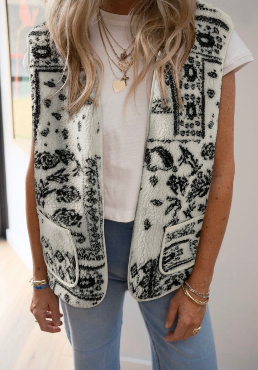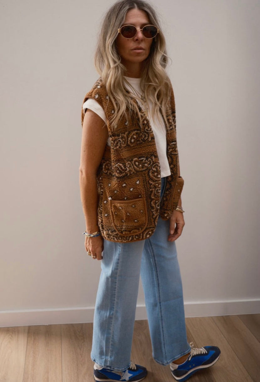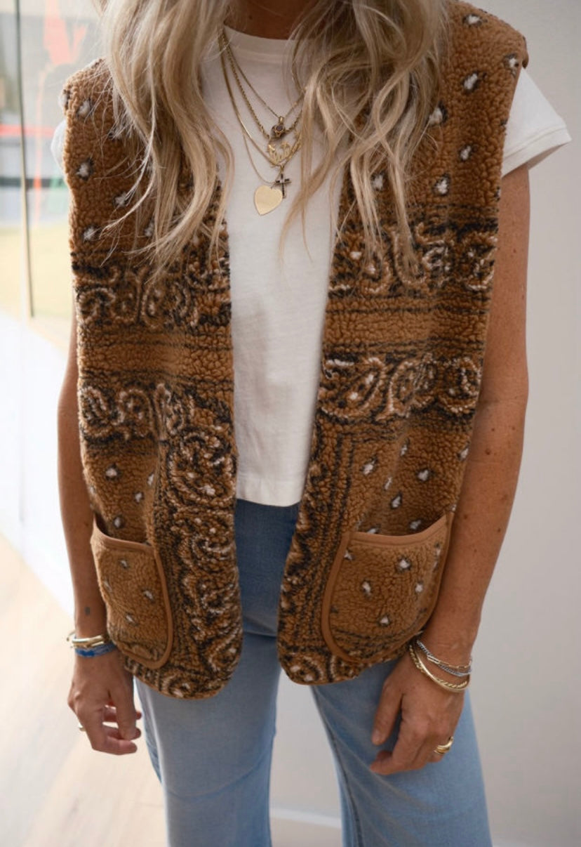 Girl In Paisley Sherpa Pocket Vest - Small / Brown is backordered and will ship as soon as it is back in stock.