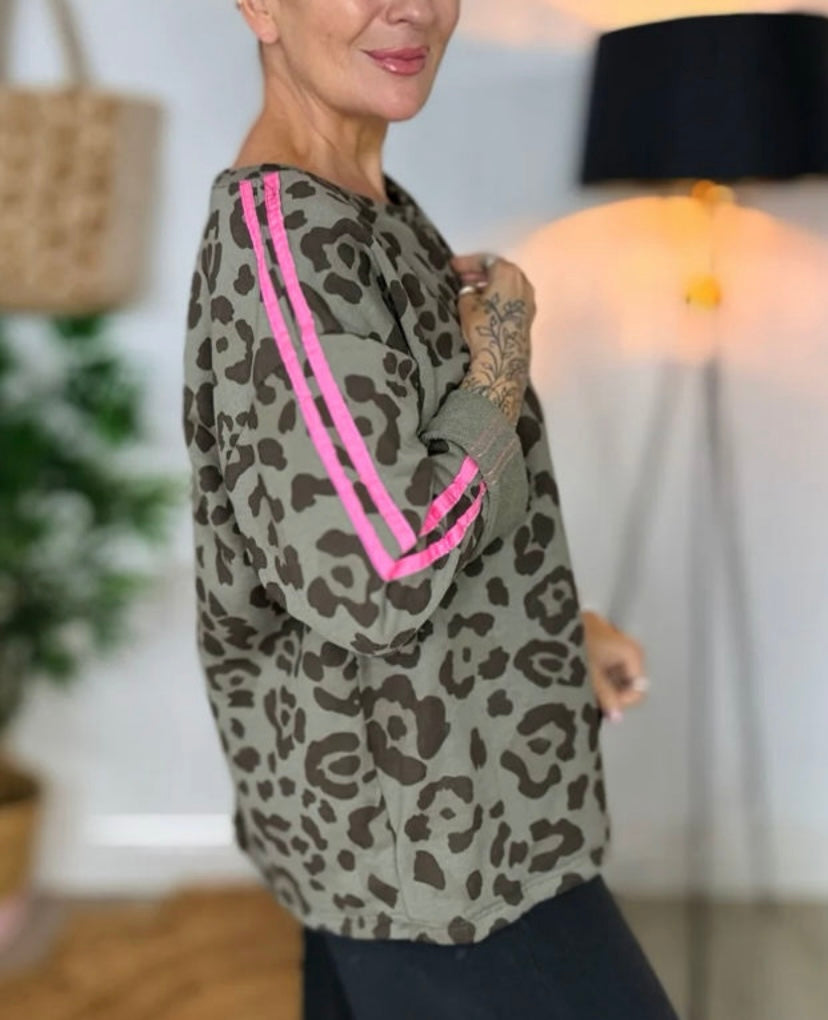 Lively In Leopard Varsity Sleeve Top - Small is backordered and will ship as soon as it is back in stock.