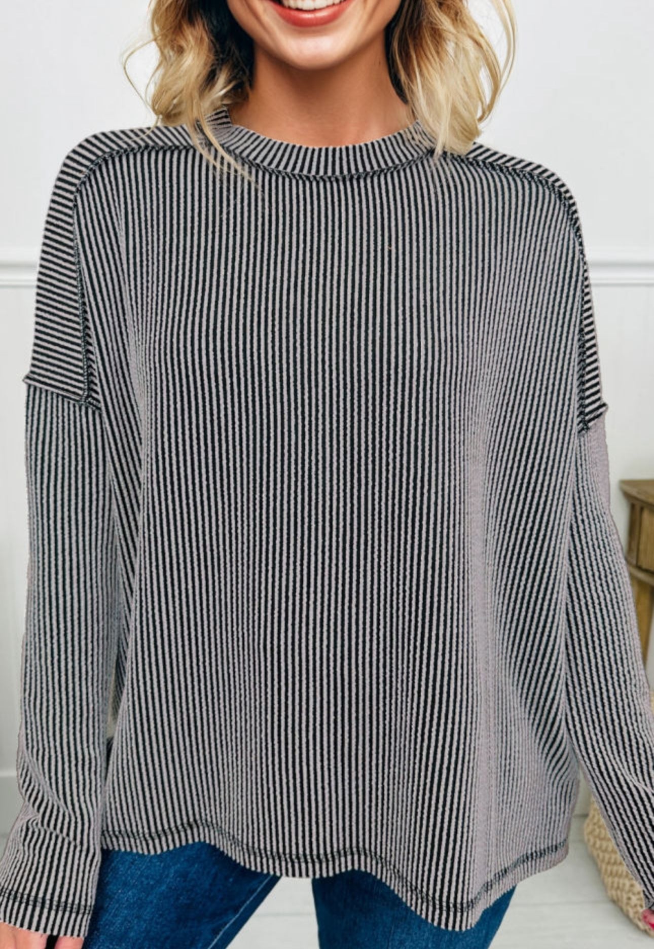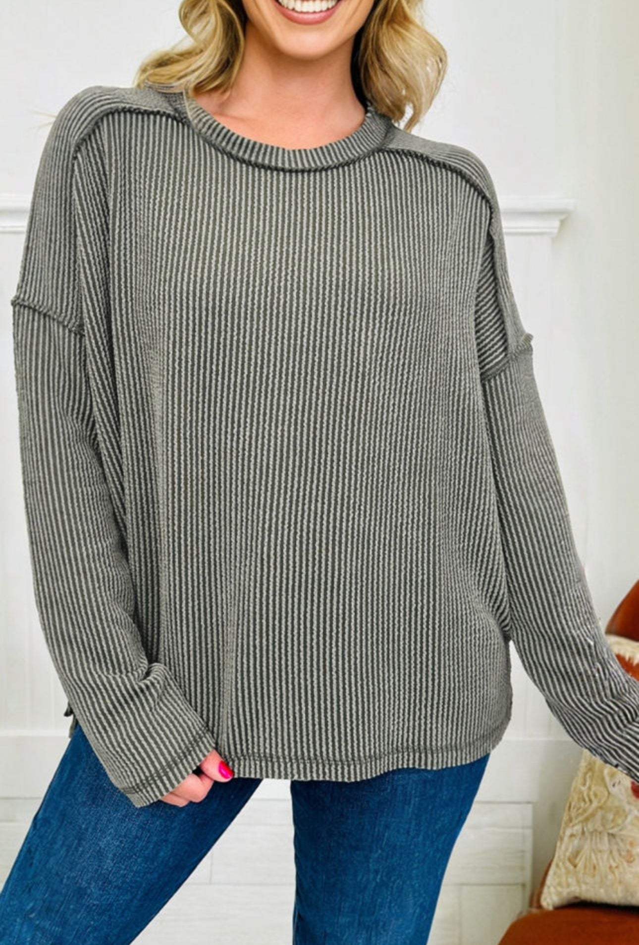 Back To The Basics Exposed Seam Loose Fit Waffle Top