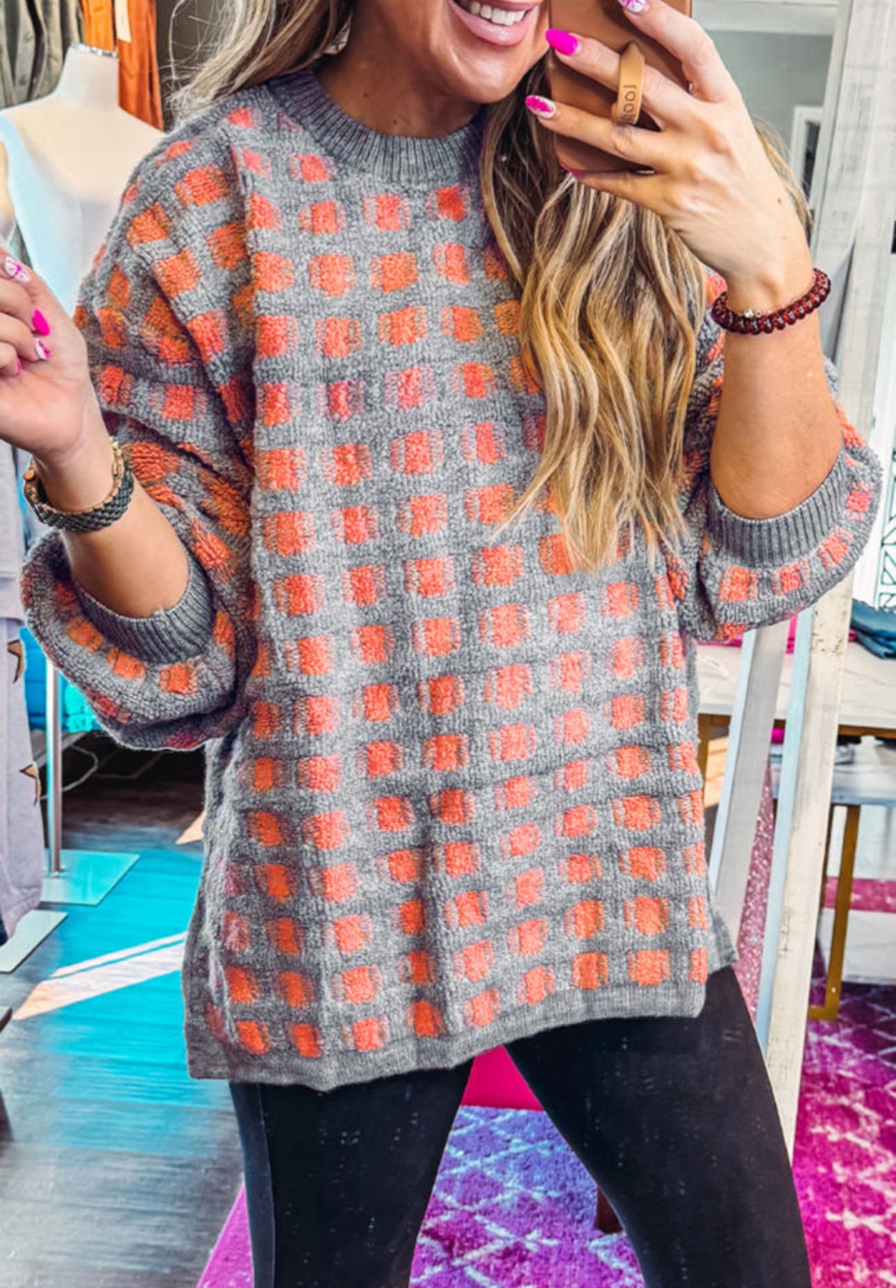 Don’t Forget It Checkered Oversized Sweater - Small is backordered and will ship as soon as it is back in stock.