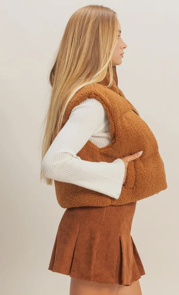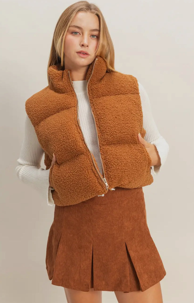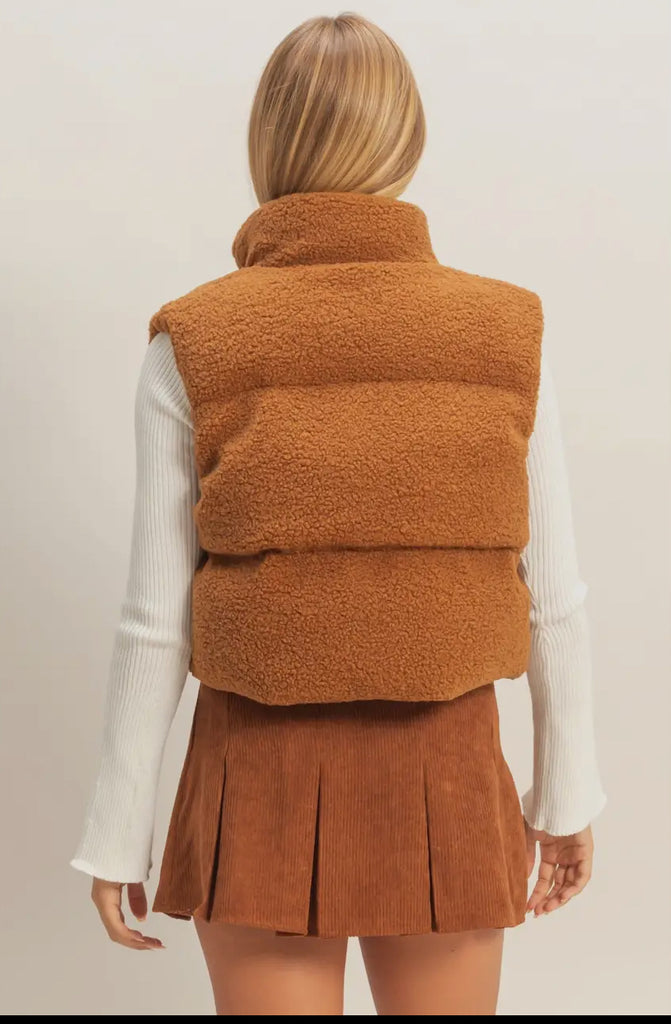 Don’t Turn Away Teddy Bear Puffer Vest - Small is backordered and will ship as soon as it is back in stock.
