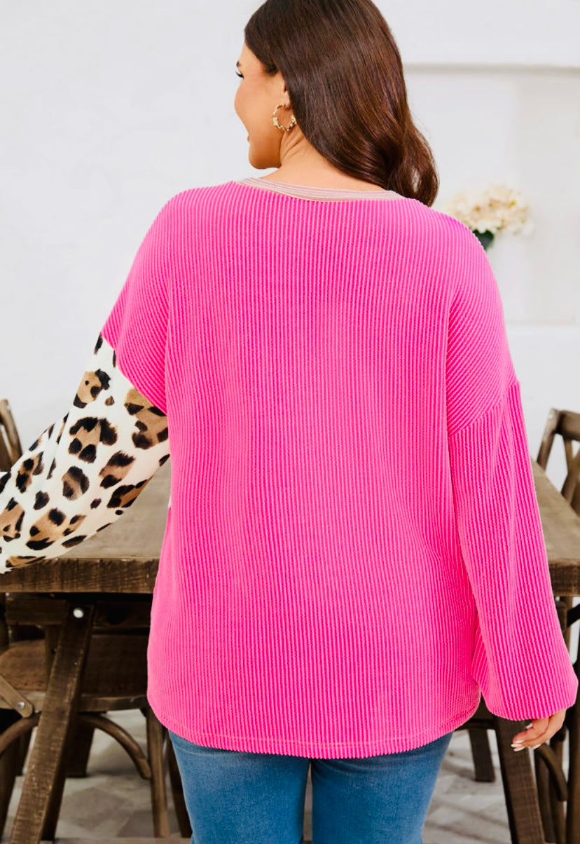 Eyes On Me Ribbed Leopard Colorblock Curvy Top