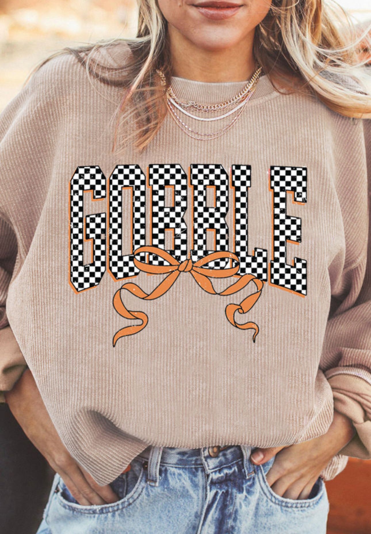 Gobble Corded Oversized Checkered Top - Small is backordered and will ship as soon as it is back in stock.