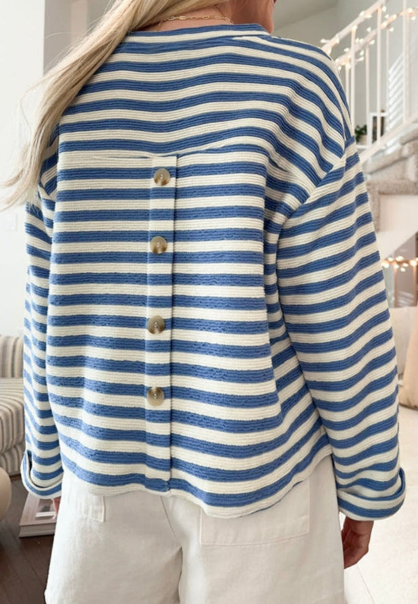 Sally Striped V Neck Button Top - Small is backordered and will ship as soon as it is back in stock.