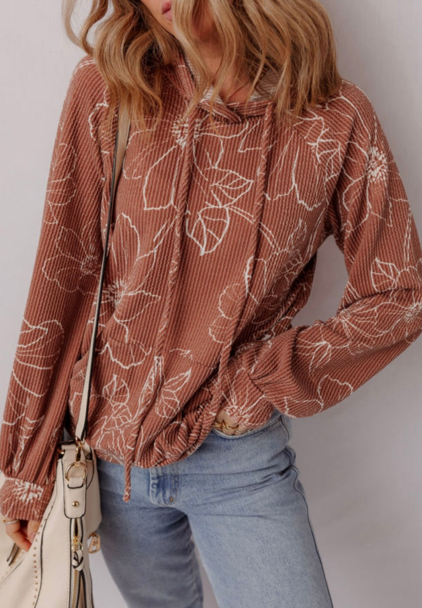 Feeling Fine Floral Ribbed Hoodie - Small is backordered and will ship as soon as it is back in stock.