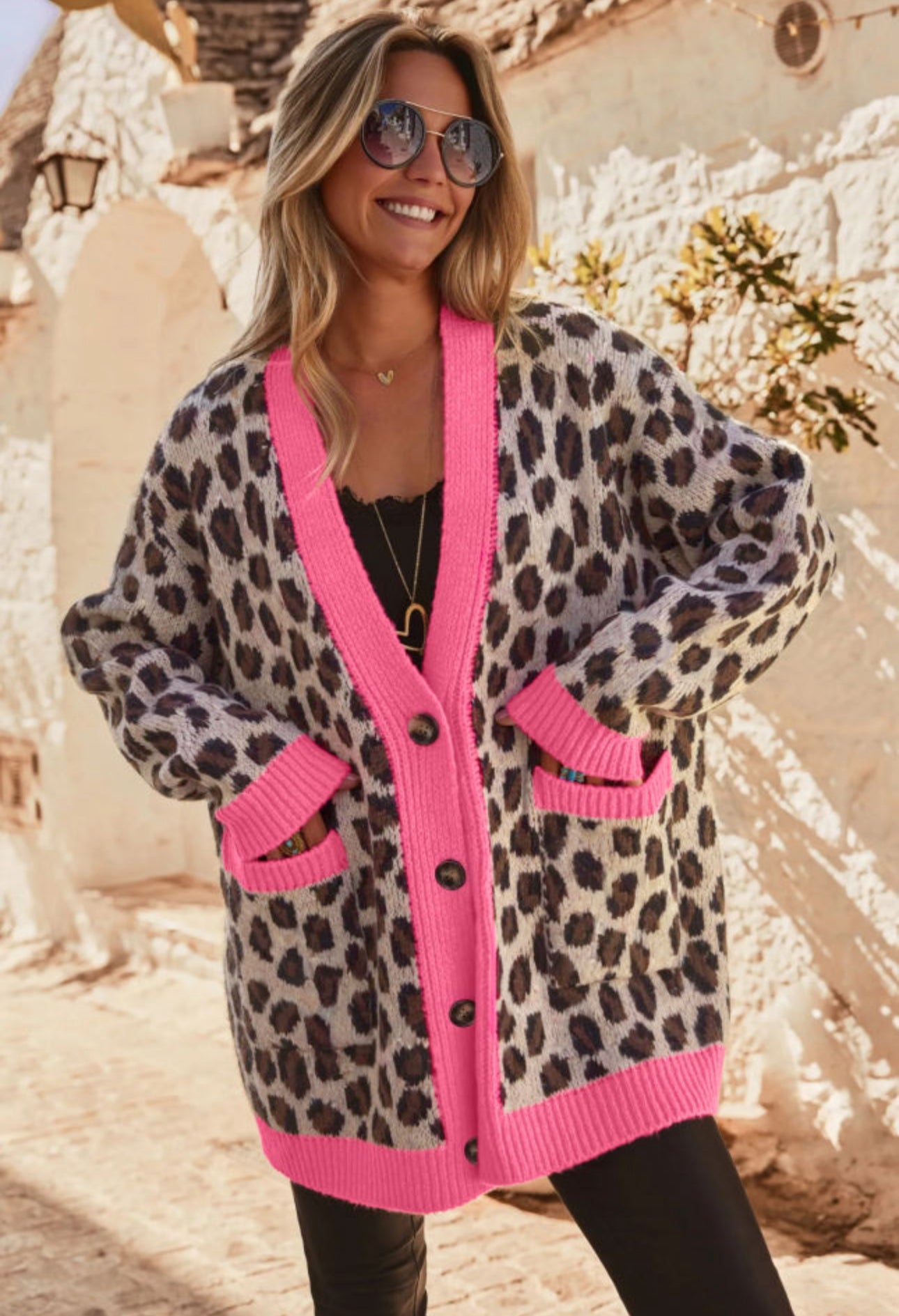 Wildly Cute Leopard Hot Pink Cardigan
